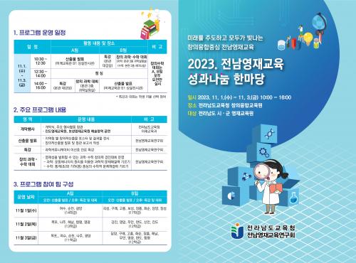 [½Åµ¿¾Æ¹æ¼Û=À̽ŵ¿±âÀÚ]Àü¶ó³²µµ±³À°Ã»ÀÌ 11¿ù 1~3ÀÏ Àü¶ó³²µµ±³À°Ã»Ã¢ÀÇÀ¶ÇÕ±³À°¿ø¿¡¼­ ¡®2023 Àü³²¿µÀç±³À° ¼º°ú ³ª´® ÇѸ¶´ç¡¯À» ¿¬´Ù. ¡®¹Ì·¡¸¦ ÁÖµµÇϰí, ¸ðµÎ°¡ ºû³ª´Â âÀÇÀ¶ÇÕÁ᫐ Àü³²¿µÀç±³À°¡¯À» ÁÖÁ¦·Î ÇÑ À̹ø ¼º°ú ³ª´® ÇѸ¶´çÀº ¿Ã ÇÑ ÇØ µ¿¾È ½Ã¡¤±º¡¦