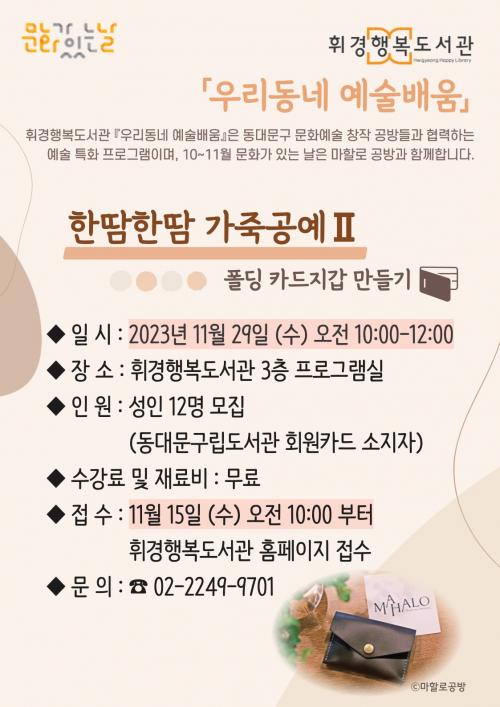 µ¿´ë¹®¹®È­Àç´Ü µµ¼­°ü, 11¿ù ¹®È­ ÇÁ·Î±×·¥ ¿î¿µ