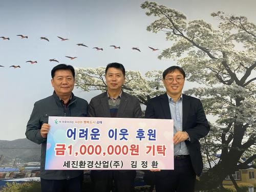¢ß¼¼ÁøÈ¯°æ»ê¾÷ ´ëÇ¥ ±èÁ¤È¯´Ô ÁÖÃÌ¸é °íÇâ¿¡ 100¸¸¿ø ¼º±Ý ±âŹ