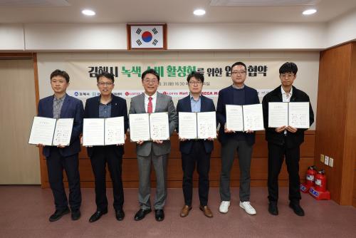 [½Åµ¿¾Æ¹æ¼Û´º½º=ÃÖ¼ÛÈ­±âÀÚ] ±èÇØ½Ã(½ÃÀå ȫſë)´Â ģȯ°æ ³ì»ö¼Òºñ Ȱ¼ºÈ­¸¦ À§ÇØ °æ³²³ì»ö±¸¸ÅÁö¿ø¼¾ÅÍ, ·Ôµ¥¸¶Æ® ±èÇØÁ¡, ·Ôµ¥¸¶Æ® ÀåÀ¯Á¡, ¸Þ°¡¸¶Æ® ±èÇØÁ¡, À̸¶Æ® ±èÇØÁ¡°ú ³ì»öÁ¦Ç° ÆÇ¸Å»ç¾÷Àå ¾÷¹«Çù¾àÀ» ü°áÇß´Ù°í 1ÀÏ ¹àÇû´Ù. À̹ø Çù¾àÀº ½Ã°¡ Àü ºÎ¼­¡¦
