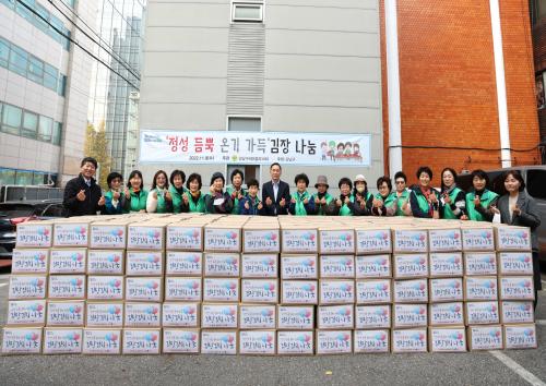 [½Åµ¿¾Æ¹æ¼Û °­³²=À̽ŵ¿±âÀÚ]°­³²±¸°¡ 9ÀÏ 9½Ã 30ºÐ ±¸Ã» º»°ü¿¡¼­ »õ¸¶À»ºÎ³àȸ¿Í ÇÔ²² ¡®»ç¶ûÀÇ ±èÀå ³ª´©±â¡¯ Çà»ç¸¦ °³ÃÖÇÑ´Ù. °­³²±¸ »õ¸¶À»ºÎ³àȸÀå(ȸÀå ¹Ú¼ö°æ)°ú ÀÓ¿ø 7¸íÀÌ ³ª´® Çà»ç ÀüÀÏÀÎ 8ÀÏ Ä£¼±µµ½ÃÀÎ ÃæºÏ ±«»ê±ºÀ¸·Î À̵¿ÇØ »êÁö¿¡¼­ ¼öÈ®ÇÑ ¹èÃß¡¦