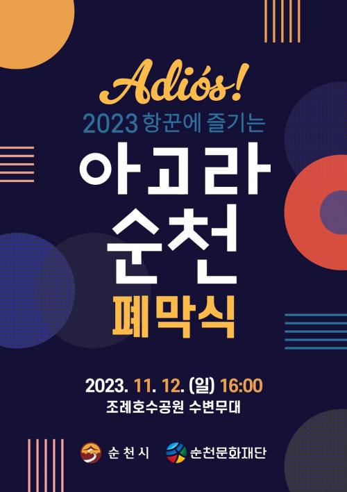 [½Åµ¿¾Æ¹æ¼Û=±è¿ëÈÆ ±âÀÚ] ¼øÃµ¹®È­Àç´Ü(ÀÌ»çÀå ³ë°ü±Ô)Àº ¿À´Â 12ÀÏ ¿ÀÈÄ 4½Ã Á¶·ÊÈ£¼ö°ø¿ø ¼öº¯¹«´ë¿¡¼­¡®2023 Çײۿ¡ Áñ±â´Â ¾Æ°í¶ó ¼øÃµ¡¯Æó¸·½ÄÀ» °³ÃÖÇÑ´Ù. À̹ø Æó¸·½ÄÀº¡®adiós! 2023 ±×³¯¿¡ ¾Æ°í¶ó!¡¯¸¦ ÁÖÁ¦·Î, ¾Æ°í¶ó ¼øÃµ °ø¿¬ÆÀ Ȱµ¿¿µ»ó ½Ãû, ¾Æ¡¦