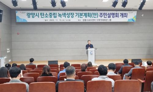 [½Åµ¿¾Æ¹æ¼Û±¤¾ç= ¹Ú±¤¿Á±âÀÚ] ±¤¾ç½Ã´Â 15ÀÏ ¼ºÈ²½ºÆ÷Ã÷¼¾ÅÍ¿¡¼­ ÁÖ¹Î, ȯ°æ´Üü, ±â¾÷ÀÎ, °ü°è °ø¹«¿ø µî ¾à 70¸íÀÌ Âü¼®ÇÑ °¡¿îµ¥ ¡®±¤¾ç½Ã ź¼ÒÁ߸³ ³ì»ö¼ºÀå ±âº»°èȹ¡¯ Ãʾȿ¡ ´ëÇÑ Áֹμ³¸íȸ¸¦ °³ÃÖÇß´Ù. ¡®±¤¾ç½Ã ź¼ÒÁ߸³ ³ì»ö¼ºÀå ±âº»°èȹ¡¯Àº ¿À´Â 2025¡¦