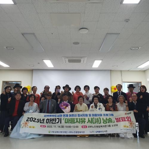 [½Åµ¿¾Æ¹æ¼Û´º½º=ÃÖ¼ÛÈ­±âÀÚ] ±èÇØ½Ã¼­ºÎ³ëÀÎÁ¾ÇÕº¹Áö°ü(°üÀå Ȳ¼ºÃ¶)¿¡¼­´Â 14ÀÏ ±èÇØÀ²Çϵµ¼­°ü(°üÀå È«¹Ì¼±)°ú ÇÔ²²¡°2023³â ¾î¸£½Å ¸¶À½Ä¡À¯ ½Ã(ãÌ) ³¶¼Û ¹ßǥȸ¡±¸¦ °³ÃÖÇß´Ù°í ¹àÇû´Ù. À̳¯ ÁøÇàµÈ ¹ßǥȸ´Â Çѱ¹¹«¿ë, Çϸð´ÏÄ« ¿¬ÁÖ, Ãà½Ã ³¶¼Û µî ÃàÇϰø¿¬¡¦