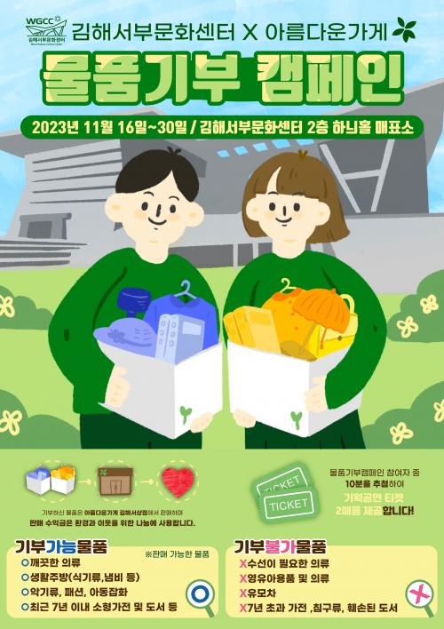 [½Åµ¿¾Æ¹æ¼Û´º½º=ÃÖ¼ÛÈ­±âÀÚ] (Àç)±èÇØ¹®È­Àç´Ü ±èÇØ¼­ºÎ¹®È­¼¾ÅÍ´Â 11¿ù 15ÀÏ(¼ö)ºÎÅÍ 30ÀÏ(¸ñ)±îÁö ±èÇØ¼­ºÎ¹®È­¼¾ÅÍ °ø¿¬Àå 2Ãþ ÇÏ´ÌȦ ¾Õ¿¡¼­ ¡®¹°Ç°±âºÎ Ä·ÆäÀΡ¯¸¦ °³ÃÖÇÑ´Ù. À̹ø Ä·ÆäÀÎÀº ÀÚ¿øÀÇ ¼±¼øÈ¯°ú ³ª´® ¹®È­ È®»êÀ» À§ÇØ (Àç)±èÇØ¹®È­Àç´Ü ±èÇØ¼­ºÎ¹®¡¦