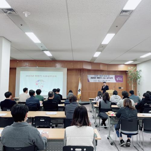 [½Åµ¿¾Æ¹æ¼Û µ¿´ë¹®=À̽ŵ¿±âÀÚ]µ¿´ë¹®±¸´Â Áö³­ 14ÀÏ ±¸ °í¹® º¯È£»ç¸¦ ÃʺùÇÏ¿© Àü ºÎ¼­ ¼Ò¼Û ¼öÇàÀÚ¸¦ ´ë»óÀ¸·Î 2023³â ÇÏ¹Ý±â ¼Ò¼Û ½Ç¹«±³À°À» ½Ç½ÃÇÏ¿´´Ù. À̳¯ ±³À°Àº ¼Ò¼Û ¼öÇà °æ·ÂÀÌ Ç³ºÎÇÑ Àü¹® º¯È£»ç¸¦ ÃÊûÇÏ¿© Á÷¿øµéÀÇ ´«³ôÀÌ¿¡ ¸ÂÃá ½Ç¹« À§ÁÖ Á߽ɡ¦