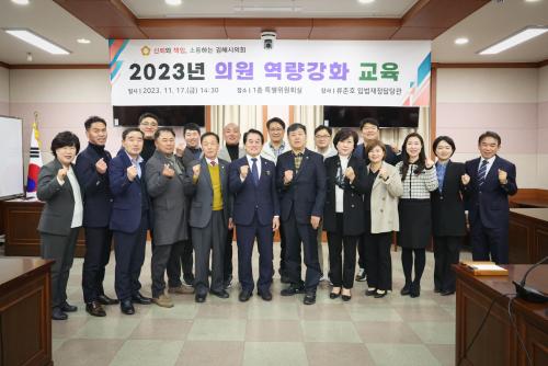 [½Åµ¿¾Æ¹æ¼Û´º½º=±èÁÖ¿¬±âÀÚ] ±èÇØ½ÃÀÇȸ(ÀÇÀå ·ù¸í¿­)´Â 17ÀÏ, ÀÇȸ 1Ãþ Ưº°À§¿øÈ¸½Ç¿¡¼­ 2023³â ÀÇ¿ø ¿ª·®°­È­ ±³À°À» ½Ç½ÃÇß´Ù. À̹ø ±³À°Àº Á¦257ȸ Á¦2Â÷ Á¤·Êȸ¸¦ ¾ÕµÎ°í 2024³â ¿¹»ê¾È ¹× ±â±Ý¿î¿ë°èȹ¾È ½É»ç µî¿¡ ´ëÇÑ ÀÇ¿øµéÀÇ Àü¹®¼º Á¦°í¸¦ À§ÇØ ¸¶·ÃµÆ¡¦