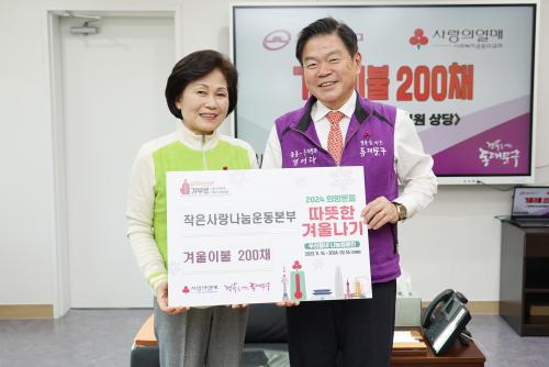 [½Åµ¿¾Æ¹æ¼Û µ¿´ë¹®=À̽ŵ¿±âÀÚ]µ¿´ë¹®±¸´Â 21ÀÏ ÀÛÀº»ç¶û³ª´®¿îµ¿º»ºÎ(´ëÇ¥ À̳²¼÷)¿¡¼­ µû¶æÇÑ °Ü¿ïÀ» À§ÇÑ ÀÌºÒ 200並 ±âºÎÇß´Ù°í ¹àÇû´Ù. ÀÛÀº»ç¶û³ª´®¿îµ¿º»ºÎ´Â Áö³­ 2021³â MOU ü°á ÀÌÈÄ ±èÄ¡ µî »ýÇÊǰÀ» ºñ·ÔÇÑ ´Ù¾çÇÑ ¹°Ç°À» Àü´ÞÇÏ¿© ÇöÀç±îÁö ȯ°¡¾× ¡¦