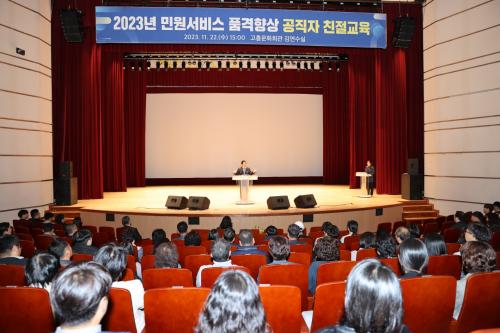 [½Åµ¿¾Æ¹æ¼Û°íÈï=¹Ú±¤¿Á±âÀÚ] °íÈﱺ(±º¼ö °ø¿µ¹Î)Àº Áö³­ 22ÀÏ °íÈïÁ¾ÇÕ¹®È­È¸°ü ±è¿¬¼ö½Ç¿¡¼­ ±º¡¤À¾¸é °øÁ÷ÀÚ 500¿© ¸íÀ» ´ë»óÀ¸·Î ÇϹݱ⠹οø¼­ºñ½º ǰ°ÝÇâ»óÀ» À§ÇÑ °øÁ÷ÀÚ Ä£Àý±³À°À» ½Ç½ÃÇß´Ù. À̹ø Ä£Àý±³À°Àº ¿Ã ÇÑ ÇØ µ¿¾È °øÁ÷ÀÚ ¹Î¿øÀÀ´ë ¼­ºñ½º ¼öÁØÀ»¡¦