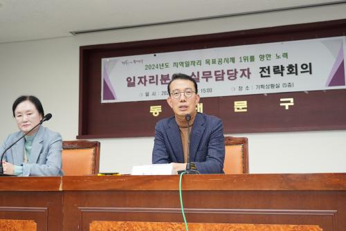 [½Åµ¿¾Æ¹æ¼Û µ¿´ë¹®=À̽ŵ¿±âÀÚ]µ¿´ë¹®±¸´Â ¡®2024³âµµ(2023³â ½ÇÀû) Áö¿ªÀÏÀÚ¸® ¸ñÇ¥°ø½ÃÁ¦ Àü±¹ 1À§¡¯¶ó´Â ¸ñÇ¥´Þ¼ºÀ» À§ÇØ Áö³­ 22ÀÏ ±¸Ã» 5Ãþ ±âȹ»óȲ½Ç¿¡¼­ ¡®ÀÏÀÚ¸®ºÐ¾ß ½Ç¹«´ã´çÀÚ Àü·«È¸ÀÇ¡¯¸¦ °³ÃÖÇß´Ù. ±¸´Â ¿ÃÇØ 8¿ù Áö¿ªÀÏÀÚ¸® ¸ñÇ¥°ø½ÃÁ¦ ÃßÁø °á°ú¸¦ ¡¦