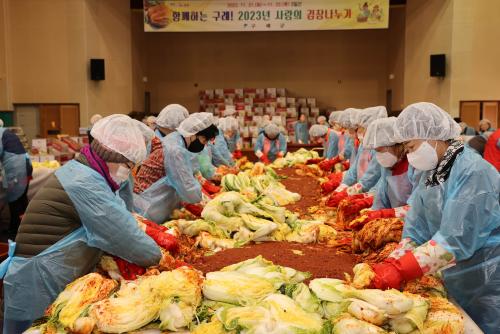 [½Åµ¿¾Æ¹æ¼Û ±¸·Ê=À±¼ºÁÖ ±âÀÚ] Àü³² ±¸·Ê±ºÀº 11¿ù 21ÀϺÎÅÍ 3Àϰ£ ¿ë¹æ¸é Áö¿ë°ü¿¡¼­ »ç¶û°ú Á¤¼ºÀÌ ´ã±ä ±èÀå ±èÄ¡¸¦ Á÷Á¢ ´ã°¡ °ü³» ¾î·Á¿î ÀÌ¿ôµé¿¡°Ô Àü´ÞÇÏ´Â 2023³â »ç¶ûÀÇ ±èÀå ³ª´©±â Çà»ç¸¦ ¿­¾ú´Ù°í ¹àÇû´Ù. À̹ø Çà»ç¿¡´Â ±¸·Ê±º ¿©¼º´Üü ¹× ÀÚ¿øºÀ»ç¡¦