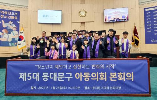 [½Åµ¿¾Æ¹æ¼Û µ¿´ë¹®=À̽ŵ¿±âÀÚ]µ¿´ë¹®±¸´Â Áö³­ 25ÀÏ ¡®2023 Á¦5´ë µ¿´ë¹®±¸ ¾Æµ¿ÀÇȸ º»È¸ÀÇ¡¯°¡ µ¿´ë¹®±¸ÀÇȸ º»È¸ÀÇÀå¿¡¼­ °³ÃÖµÆ´Ù°í ¹àÇû´Ù. µ¿´ë¹®±¸ ¾Æµ¿ÀÇȸ°¡ ÁÖÃÖÇϰí, ½Ã¸³µ¿´ë¹®Ã»¼Ò³â¼¾ÅͰ¡ ÁÖ°üÇÑ À̹ø º»È¸ÀÇ´Â ¾Æµ¿ÀÇȸ ÀÇÀåÀÇ °³È¸»ç ¹× ±âÁ¶¿¬¼³¡¦