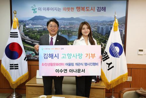 [½Åµ¿¾Æ¹æ¼Û´º½º=±èÁÖ¿¬±âÀÚ] ±èÇØ½Ã¸¦ ÀÀ¿øÇÏ´Â °íÇâ»ç¶û °í¾× ±âºÎ°¡ À̾îÁö°í ÀÖ´Ù. ƯÈ÷ 22ÀÏ¿¡´Â ±èÇØ Ãâ½ÅÀÇ À̼ö¿¬ ¾Æ³ª¿î¼­°¡ È­Á¤»ýȰ¹®È­¼¾ÅÍ ¾î¿ï¸² °³°ü½Ä Çà»çÁøÇàºñ¸¦, ¢ß¿ÍÀÌÁ¦Àַ̼ç¼Ç Á¤¼ºÇÐ ´ëÇ¥°¡ 500¸¸¿øÀ» ±âºÎÇß´Ù. À̼ö¿¬ ¾Æ³ª¿î¼­´Â ¡°¡¦