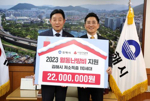 [½Åµ¿¾Æ¹æ¼Û´º½º=±èÁÖ¿¬±âÀÚ] ±èÇØ½Ã(½ÃÀå ȫſë)´Â Áö³­ 24ÀÏ °æ³²»çȸº¹Áö°øµ¿¸ð±Ýȸ¿¡¼­ ³­¹æºñ 2,200¸¸¿øÀ» ±âŹÇß´Ù°í 27ÀÏ ¹àÇû´Ù. ¼º±ÝÀº Ãë¾à°èÃþ 110¼¼´ë¿¡ ¼¼´ë´ç 20¸¸¿ø¾¿ Áö¿øµÈ´Ù. °æ³²»çȸº¹Áö°øµ¿¸ð±Ýȸ´Â ¸Å³â ¸ð±ÝÇÑ ¼º±ÝÀ¸·Î ¸íÀý, ³­¹æºñ Áö¡¦