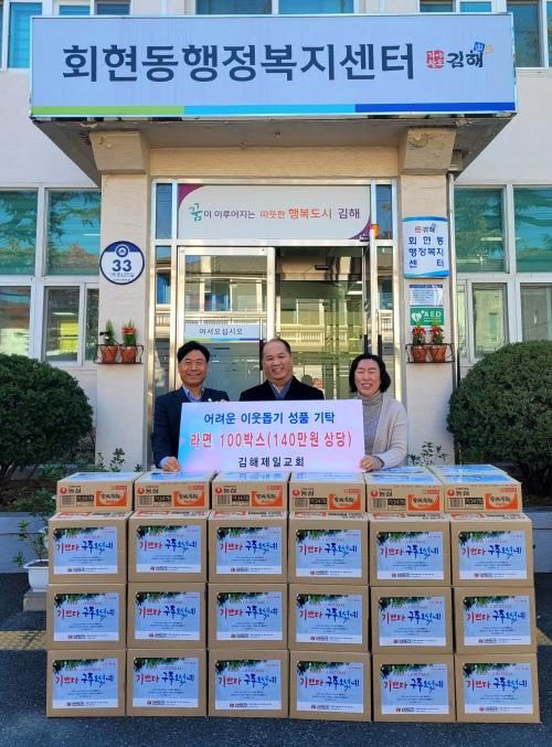 [½Åµ¿¾Æ¹æ¼Û´º½º=±èÁÖ¿¬±âÀÚ] ±èÇØÁ¦Àϱ³È¸(±è½ÅÀÏ ´ãÀÓ¸ñ»ç)´Â Áö³­ 1ÀÏ È¸Çöµ¿ÇàÁ¤º¹Áö¼¾ÅÍ¿¡ Áö¿ª ³» ¾î·Á¿î ÀÌ¿ô¿¡°Ô Àü´ÞÇØ ´Þ¶ó¸ç ¶ó¸é 100¹Ú½º(140¸¸¿ø »ó´ç)¸¦ ±âŹÇß´Ù. ±âŹµÈ ¶ó¸éÀº Ȧ·Î ½Ä»ç¸¦ ì±â±â Èûµç °ü³» µ¶°Å³ëÀÎ ¹× Áß¡¤Àå³âÃþ 100¼¼´ë¿¡ Àü´Þ¡¦