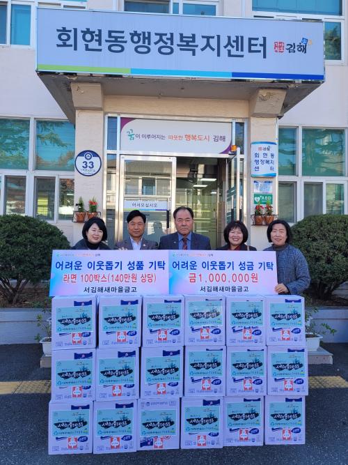 [½Åµ¿¾Æ¹æ¼Û´º½º=±èÁÖ¿¬±âÀÚ] ¼­±èÇØ»õ¸¶À»±Ý°í(ÀÌ»çÀå ÀÌ¿¬¼®)´Â Áö³­ 4ÀÏ È¸Çöµ¿ÇàÁ¤º¹Áö¼¾ÅÍ¿¡ Àú¼Òµæ Ãë¾à °èÃþ¿¡ Àü´ÞÇØ ´Þ¶ó¸ç Çö±Ý100¸¸ ¿ø°ú ¶ó¸é100¹Ú½º(140¸¸¿ø »ó´ç)¸¦ ±âŹÇß´Ù. À̳¯ ±âŹµÈ Çö±ÝÀº ±èÀå ±èÄ¡ ´ã±×±â Áö¿ø±ÝÀ¸·Î ¶ó¸é°ú ÇÔ²² ȸÇöµ¿ ³» ¡¦