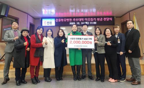 [½Åµ¿¾Æ¹æ¼Û´º½º=±èÁÖ¿¬±âÀÚ] ÀåÀ¯1µ¿ ÇàÁ¤º¹Áö¼¾ÅÍ´Â Áö³­ 12¿ù 14ÀÏ °©À»ÀåÀ¯º´¿øÁֺδëÇÐ Ãѵ¿¹®È¸(ȸÀå °­¹Ì¼ö)¿¡¼­´Â ÀåÀ¯ 1,2,3µ¿, ÀåÀ¯°©À»º´¿ø Æ÷ÇÔÇÏ¿© Áö¿ªÀÇ ¾î·Á¿î ÀÌ¿ôµé¿¡°Ô Àü´ÞÇØ ´Þ¶ó¸ç ¼º±Ý 200¸¸¿øÀ» ±âŹÇß´Ù°í ¹àÇû´Ù. ±âŹ ¹ÞÀº ¼º±ÝÀº ÀåÀ¯¡¦