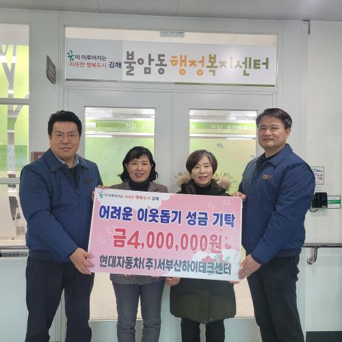Çö´ëÀÚµ¿Â÷(ÁÖ)¼­ºÎ»êÇÏÀÌÅ×Å©¼¾ÅÍ, ±èÇØ½Ã ºÒ¾ÏÁö¿ª¾Æµ¿¼¾ÅÍ¿¡ ¼º±Ý 400¸¸¿ø ±âŹ