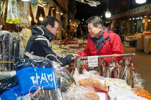 [½Åµ¿¾Æ¹æ¼Û µ¿´ë¹®=À̽ŵ¿±âÀÚ]ÀÌÇÊÇü µ¿´ë¹®±¸Ã»ÀåÀÌ ¿¬¸»À» ¸Â¾Æ û·®¸®¼ö»ê½ÃÀå µî °ü³» 12°³ ÀüÅë ½ÃÀå ¹æ¹®¿¡ ³ª¼¹´Ù. Áö³­ 18ÀÏ¿¡ À̾î 19ÀÏ °æµ¿±¤¼º»ó°¡ µîÀ» ¹æ¹®ÇÑ ÀÌ ±¸Ã»ÀåÀº »óÀεéÀÇ ³ë°í¸¦ °Ý·ÁÇϰí ÀüÅë½ÃÀåÀ» ãÀº Áֹεé°ú Àλ縦 ³ª´³´Ù. ¶ÇÇÑ ¡¦