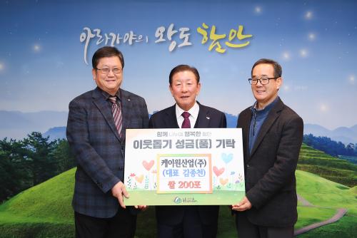 ÇԾȱºÀº ÄÉÀÌ¿ø»ê¾÷(ÁÖ)(´ëÇ¥ ±èµ¿Çö)¿¡¼­ ¾î·Á¿î ÀÌ¿ôÀ» µ½±â À§ÇÑ ½Ò(10kg) 200Æ÷(500¸¸ ¿ø »ó´ç)¸¦ ±âŹÇß´Ù°í ¹àÇû´Ù. À̳¯ ±âŹ½Ä¿¡´Â Á¶±ÙÁ¦ ÇԾȱº¼ö¿Í ÄÉÀÌ¿ø»ê¾÷(ÁÖ) ±èÁ¾Ãµ ȸÀåÀ» ºñ·ÔÇÑ °ü°èÀÚµéÀÌ Âü¼®ÇßÀ¸¸ç, ±âŹµÈ ¹°Ç°Àº ±º³» Àú¼Òµæ°èÃþ 200°¡±¸¡¦