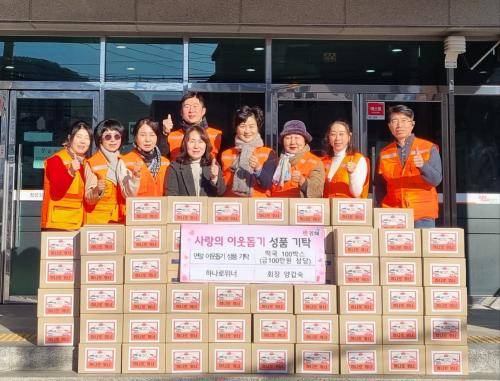 [½Åµ¿¾Æ¹æ¼Û´º½º=ÃÖ¼ÛÈ­±âÀÚ] Çϳª·ÎÀ§³Ê(ȸÀå ¾ç°©¼÷)Àº 22ÀÏ ÀåÀ¯3µ¿ÇàÁ¤º¹Áö¼¾ÅÍ(µ¿Àå ¼º¼ÒÈñ)¸¦ ¹æ¹®ÇÏ¿© ¿¬¸»À» ¸ÂÀÌÇÏ¿© °ü³» ¾î·Á¿î ÀÌ¿ô¿¡°Ô Àü´ÞÇØ ´Þ¶ó¸ç ¶±±¹ 100¹Ú½º(±Ý100¸¸¿ø »ó´ç)À» ±âŹÇß´Ù. À̹ø ³ª´®Àº Çϳª·ÎÀ§³Ê(ºñ¿µ¸® »ç´Ü¹ýÀÎ)°¡ ¿ÃÇØ 12¿ù¡¦