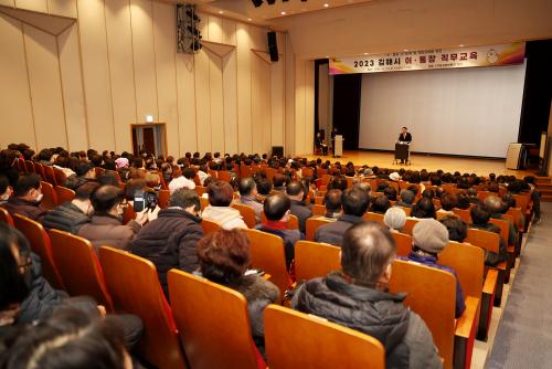[½Åµ¿¾Æ¹æ¼Û´º½º=ÃÖ¼ÛÈ­±âÀÚ] ±èÇØ½Ã´Â 27ÀÏ 2ȸ¿¡ °ÉÃÄ ±¹¸³±èÇØ¹Ú¹°°ü °­´ç¿¡¼­ 19°³ À¾¡¤¸é¡¤µ¿ ÀÌ¡¤ÅëÀå 680¿©¸íÀ» ´ë»óÀ¸·Î ¡®Áֹο¡°Ô ÀÎÁ¤¹Þ´Â ¸®´õ½Ê¡¯À̶õ ÁÖÁ¦ÀÇ Á÷¹«±³À°À» ½Ç½ÃÇß´Ù. ½Ã´Â ÃÖ±Ù Áֹεî·Ï »ç½ÇÁ¶»ç µî ¹ý·É‧Á¶·Ê»ó ¾÷¹« ¼öÇàÀº ¹°¡¦