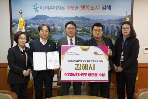 [½Åµ¿¾Æ¹æ¼Û´º½º=ÃÖ¼ÛÈ­±âÀÚ] ±èÇØ½Ã(½ÃÀå ȫſë)´Â Áö³­ 21ÀÏ ´ëÇÑ»ó°øÈ¸ÀÇ¼Ò ±¹Á¦È¸ÀÇÀå¿¡¼­ ¿­¸° Á¦28ȸ Çѱ¹À¯Åë´ë»ó ½Ã»ó½Ä¿¡¼­ À¯Åë»ê¾÷ ºÐ¾ß »ó»ý¡¤Çù·Â ¹®È­ È®»ê °ø·Î·Î »ê¾÷Åë»óÀÚ¿øºÎ Àå°ü ǥâÀ» ¼ö»óÇß´Ù°í 22ÀÏ ¹àÇû´Ù. Çѱ¹À¯Åë´ë»óÀº »ê¾÷Åë»óÀÚ¿ø¡¦