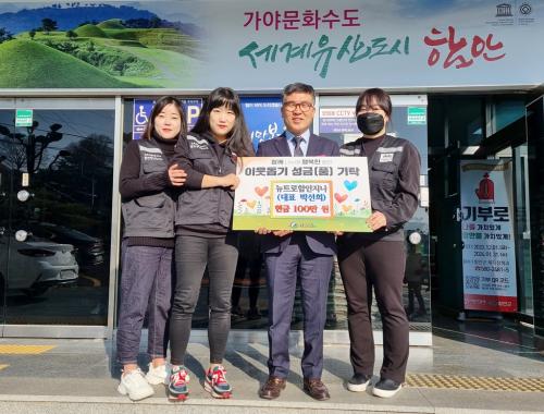 [½Åµ¿¾Æ¹æ¼Û ÇÔ¾È=À̽ŵ¿±âÀÚ]ÇԾȱºÀº ´ºÆ®·Î ÇÔ¾ÈÁö³ª(´ëÇ¥ ¹Ú¼±Èñ)¿¡¼­ Áö³­´Þ 28ÀÏ ±º³» ¾î·Á¿î ÀÌ¿ôÀ» µ½±â À§ÇÑ ¼º±Ý 100¸¸ ¿øÀ» ±âŹÇß´Ù°í ¹àÇû´Ù. À̳¯ ±âŹ½Ä¿¡´Â À¯¿øÁÖ º¹ÁöÁ¤Ã¥°úÀå°ú ´ºÆ®·Î ÇÔ¾ÈÁö³ª ¹Ú¼±Èñ ȸÀå ¿Ü °ü°èÀÚ°¡ Âü¼®ÇßÀ¸¸ç, ±âŹµÈ ¼º±Ý¡¦