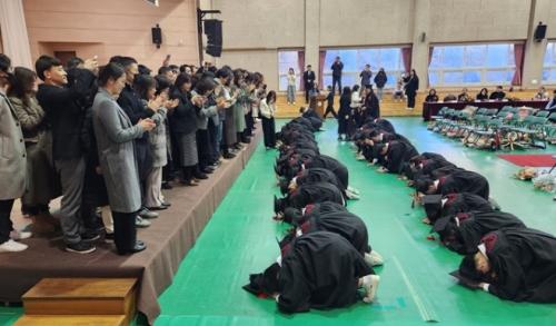¿ëÁ¤ÁßÇб³(±³Àå ¹Ú°æ¼±)´Â Áö³­ ÁÖ¸»(2024.1.6.Åä.) Çкθð´Ô µî 200¿©¸íÀÌ Âü¼®ÇÏ¿© Á¦21ȸ Á¹¾÷½ÄÀ» ¼ºÈ²¸®¿¡ ¸¶ÃÆ´Ù. ¸Å³â ¿ëÁ¤ÁßÇб³´Â 3³â°£ Çб³¿¡¼­ µ¿°íµ¿¶ôÇÑ Á¹¾÷»ýµéÀ» À§ÇØ Æ¯»öÀÖ´Â Á¹¾÷½ÄÀ» ½Ç½ÃÇϰí ÀÖ´Ù. 1, 2Çгâ ÀçÇлýµéÀÌ Á¹¾÷½Ä Àü³¯ üÀ°°ü¡¦