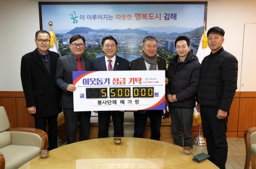 [½Åµ¿¾Æ¹æ¼Û´º½º=±èÁÖ¿¬±âÀÚ] ±èÇØ½Ã(½ÃÀå ȫſë)´Â 4ÀÏ Áö¿ª ºÀ»ç´ÜüÀÎ ¸Þ°¡¶û(ȸÀå ÀÌ»ó¸ð)¿¡¼­ ¾î·Á¿î ÀÌ¿ôÀ» À§ÇØ ½á´Þ¶ó¸ç ¼º±Ý 550¸¸¿øÀ» ±âŹÇß´Ù°í ¹àÇû´Ù. ±âŹ ¼º±ÝÀº 11°³ À¾¸éµ¿ Ãë¾à°èÃþ 55¼¼´ë¿¡ 10¸¸¿ø¾¿ Áö¿øµÈ´Ù. ÀÌ»ó¸ð ȸÀåÀº ¡°ÀÛ³â 10¿ù ¡¦