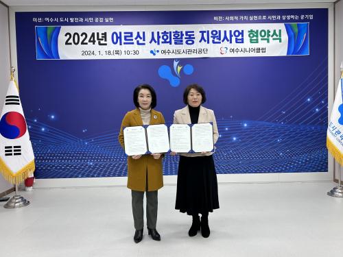 [½Åµ¿¾Æ¹æ¼Û¿©¼ö=±è±â³² ±âÀÚ] ¿©¼ö½Ãµµ½Ã°ü¸®°ø´Ü(ÀÌ»çÀå ±èÀ¯È­)°ú ¿©¼ö½Ã´Ï¾îŬ·´Àº ¡®¾î¸£½Å »çȸȰµ¿ Áö¿ø»ç¾÷¡¯ ¾÷¹«Çù¾àÀ» 1¿ù 18ÀÏ ¿©¼ö½Ãµµ½Ã°ü¸®°ø´Ü ȸÀǽǿ¡¼­ ü°áÇß´Ù. À̳¯ Çù¾à½Ä¿¡´Â ¿©¼ö½Ãµµ½Ã°ü¸®°ø´Ü ±èÀ¯È­ ÀÌ»çÀå°ú ¿©¼ö½Ã´Ï¾îŬ·´ ±è¼øÁ¤¡¦