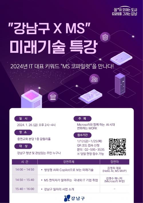 [½Åµ¿¾Æ¹æ¼Û °­³²=À̽ŵ¿±âÀÚ]°­³²±¸°¡ ¿À´Â 26ÀÏ ¿ÀÈÄ 2½Ã~4½Ã ÃæÇö±³È¸ °¥¸±¸®È¦(Å×Çì¶õ·Î27±æ 40 º»´ç 1Ãþ)¿¡¼­ ¸¶ÀÌÅ©·Î¼ÒÇÁÆ®¿Í ÇÔ²²ÇÏ´Â ¹Ì·¡±â¼ú ¹× Ãë¾÷Ư°­À» °³ÃÖÇÑ´Ù. À̹ø Ư°­¿¡¼­´Â ¸¶ÀÌÅ©·Î¼ÒÇÁÆ®ÀÇ »ý¼ºÇü ÀΰøÁö´É(AI) 꺿ÀÎ ÄÚÆÄÀÏ·µ(Copilot)¿¡¡¦