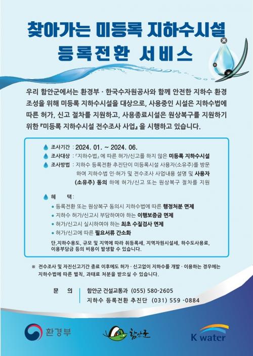 [½Åµ¿¾Æ¹æ¼Û ÇÔ¾È=À̽ŵ¿±âÀÚ]ÇԾȱºÀº ¿ÃÇØ ȯ°æºÎ·ÎºÎÅÍ ¡®¹Ìµî·Ï ÁöÇϼö ½Ã¼³ Àü¼öÁ¶»ç »ç¾÷¡¯ ´ë»ó Áö¹æÀÚÄ¡´Üü·Î ¼±Á¤µÅ 1¿ùºÎÅÍ 6¿ù±îÁö °ü³» ¹Ìµî·Ï ÁöÇϼö ½Ã¼³ Àü¼öÁ¶»ç¸¦ ½Ç½ÃÇÑ´Ù. À̹ø Àü¼öÁ¶»ç ±â°£ Çѱ¹¼öÀÚ¿ø°ø»ç°¡ ¼±Á¤ÇÑ Àü¹® Á¶»ç¾÷ü¿¡¼­ °ü³»¡¦