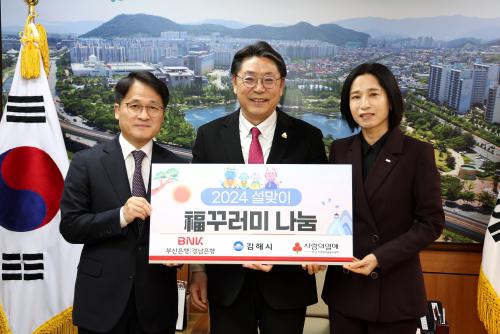 [½Åµ¿¾Æ¹æ¼Û´º½º=ÃÖ¼ÛÈ­±âÀÚ] ±èÇØ½Ã(½ÃÀå ȫſë)´Â 24ÀÏ BNK±ÝÀ¶±×·ì¿¡¼­ ¼³À» ¸Â¾Æ ¾î·Á¿î ÀÌ¿ô¿¡°Ô Àü´ÞÇØ ´Þ¶ó¸ç 5¸¸¿ø »ó´çÀÇ º¹²Ù·¯¹Ì »óÀÚ 500°³(2,500¸¸¿ø »ó´ç)¸¦ ±âŹÇß´Ù°í ¹àÇû´Ù. º¹²Ù·¯¹Ì »óÀÚ´Â ½Ä¿ëÀ¯, ¶ó¸é, ¼¤Çª µî 13Á¾ÀÇ »ýÇÊǰÀ¸·Î ±¸¼ºµÇ¾î ¡¦