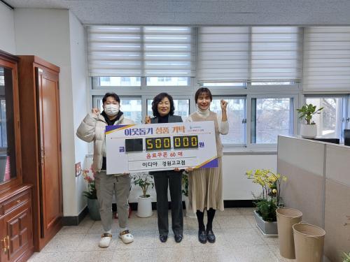 [½Åµ¿¾Æ¹æ¼Û´º½º=ÃÖ¼ÛÈ­±âÀÚ] ±èÇØ½Ã ¿Üµ¿ ¼ÒÀç À̵ð¾ß(°æ¿ø°í±³Á¡)´Â 1¿ù 23ÀÏ ³»¿Üµ¿ ÇàÁ¤º¹Áö¼¾Å͸¦ Á÷Á¢ ã¾Æ À½·áÄíÆù 60¸Å(50¸¸¿ø »ó´ç)¸¦ Àü´ÞÇÏ¿´´Ù. 23³â 9¿ù¿¡ °æ¿ø°í±³Á¡À» »õ·Î ¿ÀÇÂÇÑ ±èŰü »çÀåÀº ¡°Çб³¾Õ¿¡ À§Ä¡ÇØ ÀÖ´Ùº¸´Ï Çϱ³ÈÄ¿¡ ÇлýµéÀÌ ÀÚ¡¦