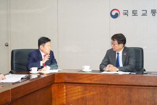 [½Åµ¿¾Æ¹æ¼Û µ¿´ë¹®=À̽ŵ¿±âÀÚ]ÀÌÇÊÇü µ¿´ë¹®±¸Ã»ÀåÀÌ 26ÀÏ °úõ Á¤ºÎÁ¾ÇÕû»ç¿¡¼­ ¹Ú»ó¿ì ±¹Åä±³ÅëºÎÀå°üÀ» ¸¸³ª Áö¿ªÀÇ ¿©·¯ Çö¾È°ú ¹Ì·¡ ¹ßÀü ¹æ¾È¿¡ ´ëÇØ ³íÀÇÇß´Ù. ÀÌ ±¸Ã»ÀåÀº ¸é´ã¿¡¼­ GTX-B³ë¼± ȯ±â±¸ÀÇ À§Ä¡ º¯°æ ¹®Á¦¸¦ ¾ð±ÞÇß´Ù. ƯÈ÷, µ¿ÀÇ ¾øÀÌ ÀÌ·ïÁø¡¦