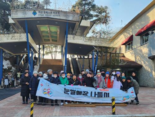 [½Åµ¿¾Æ¹æ¼Û µ¿´ë¹®=À̽ŵ¿±âÀÚ]Áö³­ 26ÀÏ µ¿´ë¹®±¸(±¸Ã»Àå ÀÌÇÊÇü) Àå¾ÖÀÎ °¡Á· 70¿© ¸íÀÌ µé¶á ¸¶À½À¸·Î ±¸Ã» ¾Õ ±¤Àå¿¡ ¸ð¿´´Ù. µ¿¹é¿©Çà»ç(¿ëµÎµ¿ ¼ÒÀç)ÀÇ ÈÄ¿øÀ¸·Î °æ±âµµ ÀÌõ ¡®Áö»êÆ÷·¹½ºÆ®¸®Á¶Æ® ´«½ä¸ÅÀ塯 °¡Á· ³ªµéÀ̸¦ °¡±â À§ÇØ ¸ðÀÎ °ÍÀÌ´Ù. µ¿¹é¿©Çࡦ