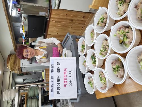 [½Åµ¿¾Æ¹æ¼Û´º½º=±èÁÖ¿¬±âÀÚ] ÀåÀ¯1µ¿ ¼ÒÀç ¹Ì°¨Çѹæ¹é¼÷(´ëÇ¥ ¿ì¹Ì¼÷)¿¡¼­ 25ÀÏ °ü³» ¾î·Á¿î ÀÌ¿ôÀ» À§ÇØ Çѹæ»ï°èÅÁ 30ÀκÐÀ» ÀåÀ¯1µ¿ÇàÁ¤º¹Áö¼¾ÅÍ¿¡ ±âŹÇß´Ù. ¿ì¹Ì¼÷ ´ëÇ¥´Â ¡°Ãß¿î °Ü¿ï, Á¤¼º½º·´°Ô ¸¸µç º¸¾ç½ÄÀ» µå½Ã°í Á¶±ÝÀ̳ª¸¶ ±â·Â ȸº¹¿¡ µµ¿òÀÌ µÇ±æ ¡¦