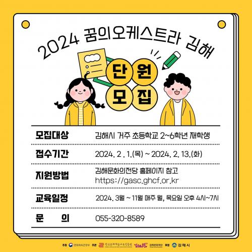 [½Åµ¿¾Æ¹æ¼Û´º½º=±èÁÖ¿¬±âÀÚ] (Àç)±èÇØ¹®È­Àç´Ü¡®²ÞÀÇ ¿ÀÄɽºÆ®¶ó ±èÇØ¡¯°¡ ¿À´Â 2¿ù 1ÀÏ(¸ñ)ºÎÅÍ 13ÀÏ(È­)±îÁö 2024³â ½Å±Ô ¿ÀÄɽºÆ®¶ó ´Ü¿øÀ» ¸ðÁýÇÑ´Ù. (Àç)±èÇØ¹®È­Àç´Ü°ú ±èÇØ½Ã°¡ 2019³âºÎÅÍ ÁøÇàÇϰí ÀÖ´Â ¡®²ÞÀÇ ¿ÀÄɽºÆ®¶ó ±èÇØ¡¯´Â ¿ÀÄɽºÆ®¶ó ¿¬ÁÖ¸¦ ÅëÇØ¡¦