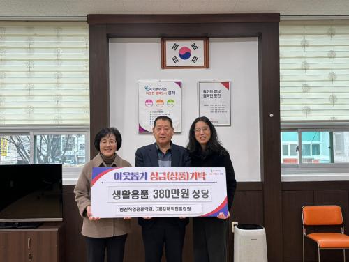[½Åµ¿¾Æ¹æ¼Û´º½º=ÃÖ¼ÛÈ­±âÀÚ] ¿µÁøÁ÷¾÷Àü¹®Çб³(±³Àå ÀÌ»ó¼·), (Àç)±èÇØÁ÷¾÷ÈÆ·Ã¿ø(¿øÀå µµ½Âȯ)Àº 5ÀÏ ºÎ¿øµ¿ÇàÁ¤º¹Áö¼¾Å͸¦ ¹æ¹®ÇØ Àú¼Òµæ Ãë¾à°èÃþ¿¡ 380¸¸¿ø »ó´çÀÇ »ýȰ¿ëǰ(¼¤Çª, ¸°½º, Ä¡¾à µî)À» ±âŹÇß´Ù. ¿µÁøÁ÷¾÷Àü¹®Çб³´Â ±¹³» ÃÖ°íÀÇ Á÷¾÷ÈÆ·Ã±â°üÀ¸¡¦