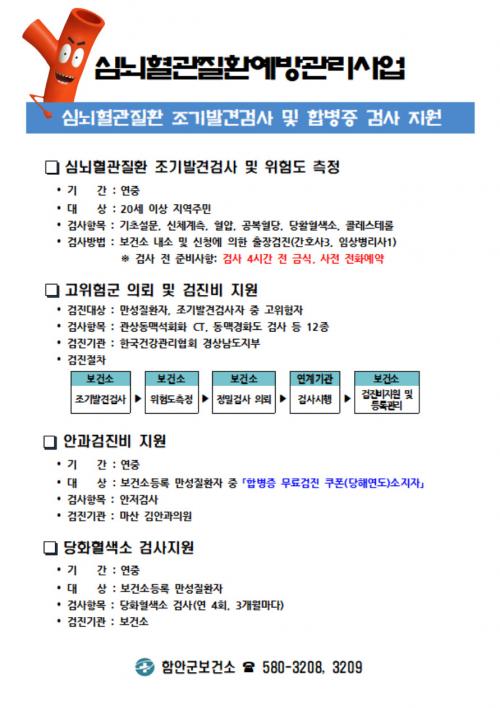 [½Åµ¿¾Æ¹æ¼Û ÇÔ¾È=À̽ŵ¿±âÀÚ]ÇԾȱºº¸°Ç¼Ò´Â ¿ì¸®³ª¶ó¿¡¼­ Áúº´ºÎ´ãÀÌ Å©°í ÁÖ¿ä »ç¸Á¿øÀÎÀÎ ½É³úÇ÷°üÁúȯ ¿¹¹æ»ç¾÷ÀÇ ÀÏȯÀ¸·Î ¡®½É³úÇ÷°üÁúȯ Á¶±â¹ß°ß ¹«·á°Ë»ç¡¯¸¦ ½Ç½ÃÇÑ´Ù. 1Â÷ °Ë»ç¿¡¼­´Â Ç÷¾Ð¡¤Ç÷´ç¡¤ÄÝ·¹½ºÅ×·Ñ µîÀÇ °Ë»ç¿Í ÇÔ²² »ýȰ½À°ü, µ¿¹ÝÁúȯ, ½É¡¦
