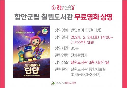 [½Åµ¿¾Æ¹æ¼Û ÇÔ¾È=À̽ŵ¿±âÀÚ]ÇԾȱº¸³ Ä¥¿øµµ¼­°üÀº ¿À´Â 24ÀÏ Åä¿äÀÏ ¿ÀÈÄ 2½Ã, µµ¼­°ü 3Ãþ ½Ãû°¢½Ç¿¡¼­ ¾Ö´Ï¸ÞÀÌ¼Ç ¿µÈ­ ¡®¹Ýµ÷ºÒÀÌ µòµò¡¯À» ¹«·á·Î »ó¿µÇÑ´Ù. 2¿ù »ó¿µÀÛ ¡®¹Ýµ÷ºÒÀÌ µòµò¡¯Àº ±ú²ýÇÏ°í ¾Æ¸§´Ù¿î ½£¼Ó ¸¶À»¿¡ »ç´Â ¹Ýµ÷ºÒÀÌ µòµò°ú Ä£±¸µéÀÌ ¡¦