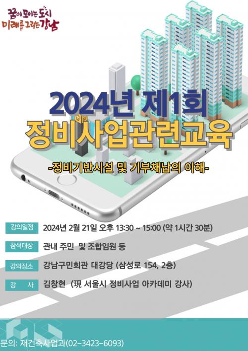 [½Åµ¿¾Æ¹æ¼Û °­³²=À̽ŵ¿±âÀÚ]°­³²±¸°¡ ¿À´Â 21ÀÏ 13½Ã 30ºÐ~15½Ã °­³²±¸¹Îȸ°ü ´ë°­´ç¿¡¼­ ¿ÃÇØ ù Àç°ÇÃà Á¤ºñ»ç¾÷ ¾ÆÄ«µ¥¹Ì¸¦ °³ÃÖÇÑ´Ù. Áö³­ÇØ È°¹ßÇØÁø Àç°ÇÃà»ç¾÷¿¡ ¹ß¸ÂÃç ±¸´Â ÁÖÅà Á¤ºñ»ç¾÷º° ÁÖ¿ä ³»¿ëÀ» Á¶ÇÕ¿ø°ú Áֹε鿡°Ô ¾Ë·ÁÁÖ´Â ±³À°À» 4Â÷·Ê ½Ç½Ã¡¦