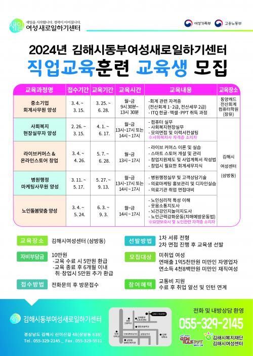 [½Åµ¿¾Æ¹æ¼Û´º½º=ÃÖ¼ÛÈ­±âÀÚ] (Àç)±èÇØ½Ãº¹ÁöÀç´Ü ±èÇØ½Ãµ¿ºÎ¿©¼º»õ·ÎÀÏÇϱ⼾ÅÍ(ÀÌÇÏ µ¿ºÎ»õÀϼ¾ÅÍ)¿¡¼­´Â ¿©¼ºÀÇ »çȸÂü¿©¿Í Ã롤â¾÷À» Ȱ¼ºÈ­Çϰí Áö¿ª »çȸ ¹× »ê¾÷ü ¿ä±¸¿¡ ÀûÇÕÇÑ ¿©¼º ÀηÂÀ» ¾ç¼ºÇϱâ À§ÇØ 2024³â ¿©¼º Á÷¾÷±³À°ÈÆ·Ã ±³À°»ýÀ» ¸ðÁýÇÑ´Ù. ¡¦