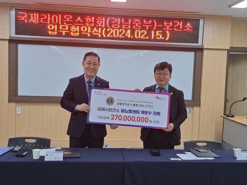 [½Åµ¿¾Æ¹æ¼Û´º½º=ÃÖ¼ÛÈ­±âÀÚ] ±èÇØ½Ãº¸°Ç¼Ò´Â ±¹Á¦¶óÀ̿½ºÇùȸ355-C(°æ³²ÁߺÎ)Áö±¸(ÃÑÀç ±è¾ç±Ù)¿Í ´ç´¢º´¼¾ÅÍ È¯°æÁ¶¼ºÀ» À§ÇÑ ¾÷¹«Çù¾àÀ» ü°áÇß´Ù°í 15ÀÏ ¹àÇû´Ù. ±¹Á¦¶óÀ̿½ºÇùȸ355-C(°æ³²ÁߺÎ)Áö±¸¿¡¼­´Â ÀÛ³â 10¿ù 10ÀÏ ±èÇØ½Ãº¸°Ç¼Ò¸¦ ÁöÁ¤ÇÏ¿© ´ç´¢º´¼¾¡¦