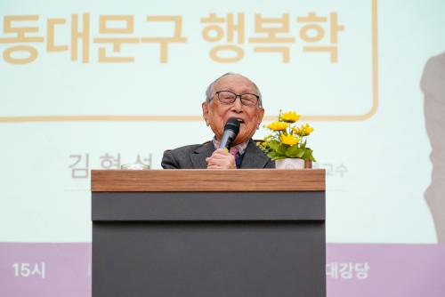 [½Åµ¿¾Æ¹æ¼Û µ¿´ë¹®=À̽ŵ¿±âÀÚ]¼­¿ï µ¿´ë¹®±¸´Â 27ÀÏ(È­) ±èÇü¼® ±³¼ö(¿¬¼¼´ëÇб³ öÇаú ¸í¿¹±³¼ö)¸¦ ÃÊÃ»ÇØ ¡®100¼¼ öÇÐÀÚ¿¡°Ô ¹è¿ì´Â µ¿´ë¹®±¸ ÇູÇС¯À» ÁÖÁ¦·Î ¿ÃÇØ ù ¹øÂ° ¡®ÇູÀ» ¿©´Â µ¿´ë¹® ¸í»çƯ°­¡¯À» ÁøÇàÇß´Ù. ±è ±³¼ö´Â À̳¯ ÀڽŠ¾Õ¿¡ ¸ðÀÎ 500¡¦