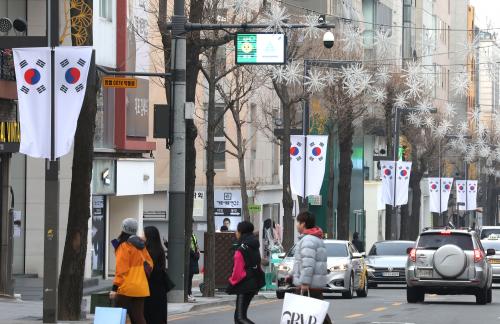 [½Åµ¿¾Æ¹æ¼Û °­³²=À̽ŵ¿±âÀÚ]°­³²±¸°¡ ½Å»çµ¿ÀÌ °¡·Î¼ö±æ ÃÑ 680m ±¸°£ ¾çÃø °¡·ÎµîÁÖ 40°³¿¡ ¹è³ÊÇü űرâ¿Í ¸¸±¹±â¸¦ °Ô¾çÇÑ´Ù. Á¦105ÁÖ³â 3¡¤1ÀýÀ» ¸Â¾Æ °¡·Î¼ö±æ¿¡ °Ô¾çÇÑ Å±رâ´Â ¿ÃÇØ ¿¬Áß »ó½Ã °Ô¾çÇÒ °èȹÀ¸·Î ƯÈ÷ ¾ß°£¿¡´Â °æ°ü Á¶¸í°ú ¾î¿ì·¯Á® ÀÌ»öÀû¡¦