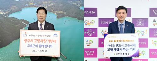 [½Åµ¿¾Æ¹æ¼Û°íÈï=¹Ú±¤¿Á±âÀÚ] °íÈﱺ(±º¼ö °ø¿µ¹Î)Àº Áö³­ 28ÀÏ °ø¿µ¹Î °íÈﱺ¼ö¿Í ¹æ¼¼È¯ ±¤ÁÖ½ÃÀåÀÌ °íÇâ»ç¶û ±âºÎ±ÝÀ» »óÈ£ ±³Â÷ ±âºÎÇß´Ù°í ¹àÇû´Ù. À̹ø ±³Â÷ ±âºÎ´Â À۳⿡ ÀÌ¾î µÎ Áö¿ªÀÇ ´ÜüÀåÀÌ ±³Â÷ ±âºÎ¸¦ ÅëÇØ °íÇâ»ç¶û±âºÎÁ¦ÀÇ ¾ÈÁ¤ÀûÀÎ Á¤Âø°ú È®»êÀ»¡¦
