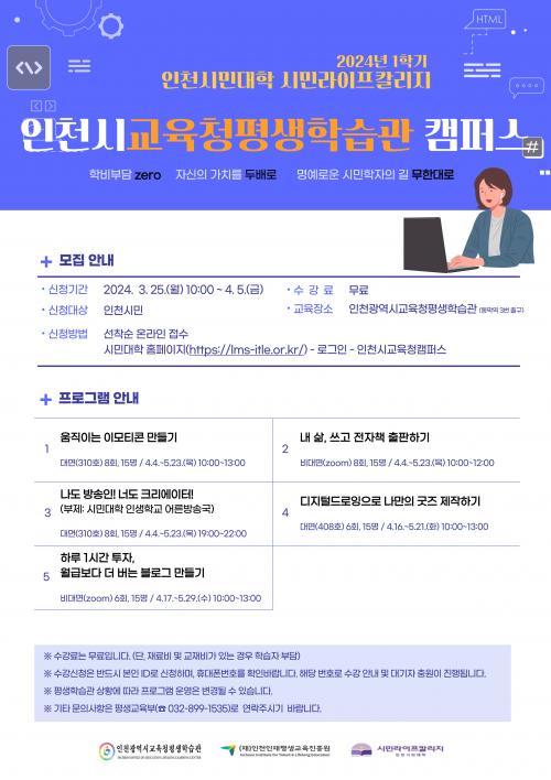 [½Åµ¿¾Æ¹æ¼Û ÀÎõ= À±¹Î½Ä ±âÀÚ]ÀÎõ±¤¿ª½Ã±³À°Ã»Æò»ýÇнÀ°ü °üÀå À¯º´½ÄÀº ÀÎõ½Ã¹Î´ëÇÐ ½Ã¹Î¶óÀÌÇÁÄ®¸®Áö ¡¸ÀÎõ½Ã±³À°Ã»Æò»ýÇнÀ°ü Ä·ÆÛ½º¡¹ 1Çбâ ÇнÀÀÚ¸¦ 25ÀÏ ¿ÀÀü 10½ÃºÎÅÍ ¸ðÁýÇÑ´Ù. ÀÎõ½Ã±³À°Ã»Æò»ýÇнÀ°ü Ä·ÆÛ½º´Â Àι®¡¤»çȸ¡¤°æÁ¦ ¿µ¿ª°ú ¹Ì·¡ ±â¼ú ºÐ¡¦