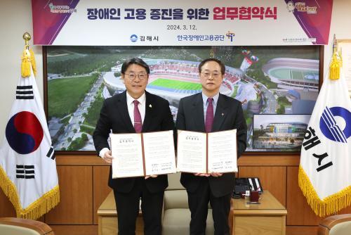 [½Åµ¿¾Æ¹æ¼Û´º½º=ÃÖ¼ÛÈ­±âÀÚ] ±èÇØ½Ã°¡ Çѱ¹Àå¾ÖÀΰí¿ë°ø´Ü°ú ÇÔ²² Àå¾ÖÀÎ °í¿ë Ȱ¼ºÈ­¿Í Àå¾ÖÀÎ ±Ù¹«È¯°æ Á¶¼ºÁö¿øÀ» À§ÇØ ¼ÕÀ» ¸ÂÀâ¾Ò´Ù. Áö³­ 12ÀÏ ±èÇØ½Ã¿Í Çѱ¹Àå¾ÖÀΰí¿ë°ø´ÜÀÇ ¾÷¹«Çù¾à ü°á¿¡ µû¶ó Àå¾ÖÀÎ °í¿ë Ȱ¼ºÈ­ Áö¿øÀ» À§ÇÑ Çù·Âü°è¸¦ ±¸ÃàÇϰí, Á¤º¸¡¦